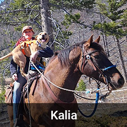 Kelsey trains mustangs and enjoys hiking/camping with her bloodhound Tracer and border collie Jigs.